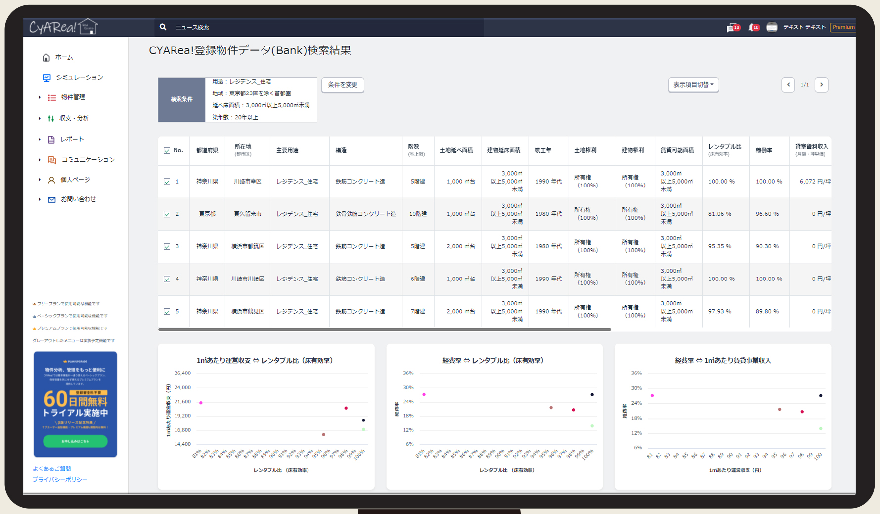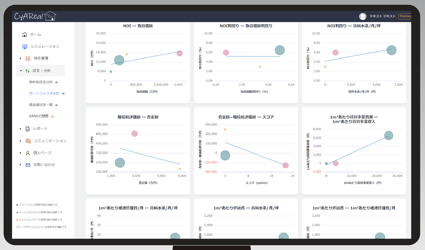 保有中の不動産情報について、購入検討中の不動産などとの比較検討を行えるのが「ポートフォリオ分析」です。