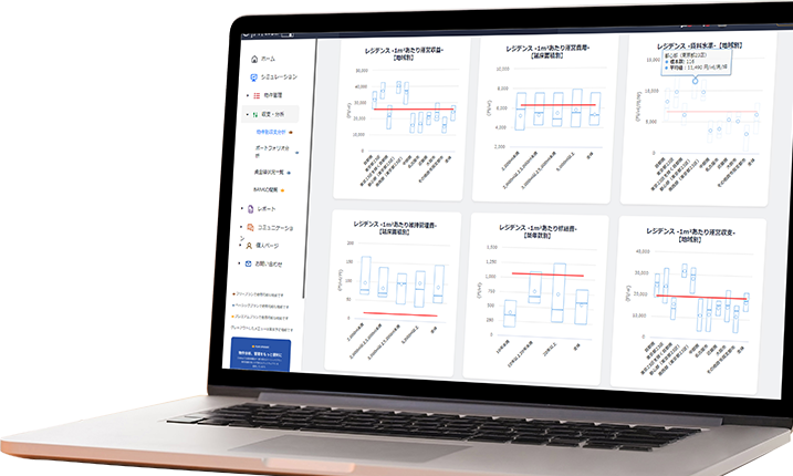 ビッグデータに拠る経営インデックスや分析ポイントを多⾯的に取り揃えており、これから不動産投資を始めようとする方や投資の経験知識が浅いスタッフでも登録後すぐに付加価値の高い収益不動産分析が可能です。